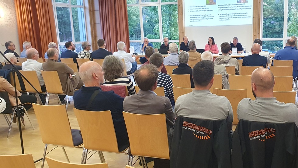 Die Energiegemeinschaft Weissacher Tal eG (EGWT) hat bei ihrer Generalversammlung im Bürgersaal Allmersbach nicht nur auf ein bewegtes Geschäftsjahr 2024 zurückgeblickt, sondern auch ein zentrales Zukunftsthema vorgestellt: Die Genossenschaft strebt eine Fusion mit der EnerGeno Heilbronn Franken eG (EnerGeno) an. Ziel ist es, die wirtschaftliche Basis zu stärken, die Organisation zu professionalisieren und die regionale Energiewende langfristig abzusichern. Über die Fusion entscheiden die Mitglieder in der Generalversammlung im Jahr 2026. Bereits am 13. Oktober 2025 lädt die EGWT alle Mitglieder und Interessierten zu einer Informationsveranstaltung nach Allmersbach ein.