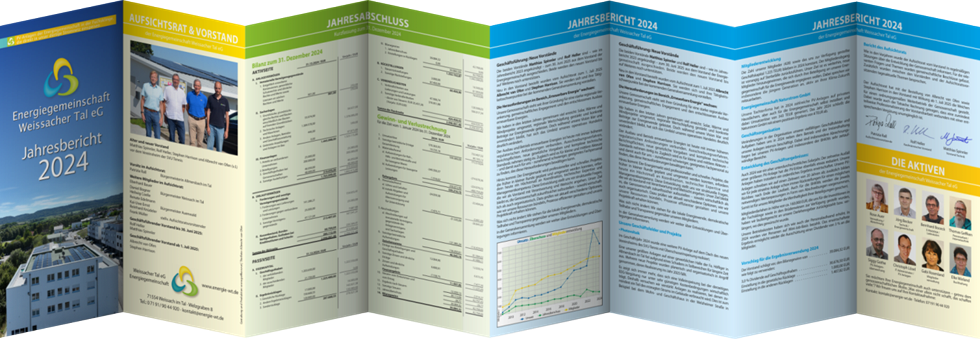 |>>>Hier ist der Jahresbericht als PDF (185 KB) Der vollständige Jahresabschluss 2024 liegt im Büro der Energiegemeinschaft im Bürgerhaus, Welzgraben 8, 71554 Weissach im Tal – Unterweissach, zur Einsicht der Mitglieder aus. Bitte wenden Sie sich bei Interesse per E-Mail an den Vorstand: kontakt@energie-wt.de